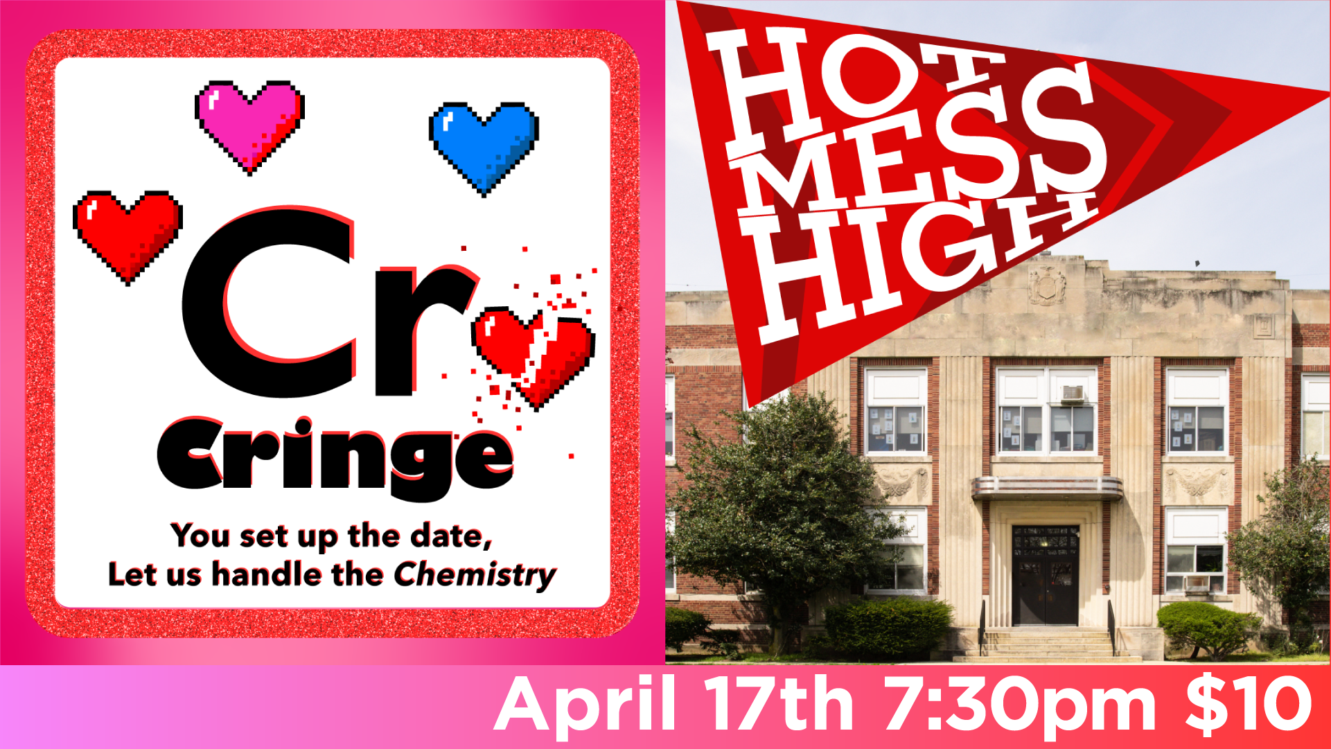 High school equals high comedy! Wander the halls of Hot Mess High, full of all the jocks, popular kids, burnouts, nerds, and hapless grownups you remember. We wouldn't want to go back to high school, but it's pretty fun to visit.