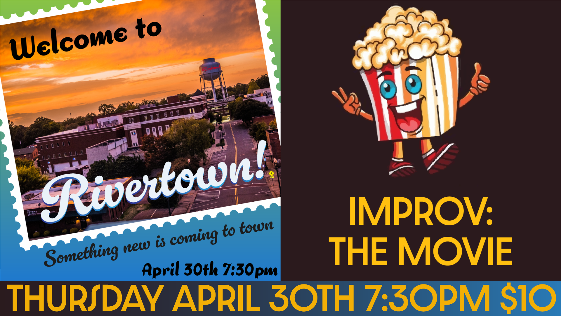 Blockbuster Movies usually start with a script, this show does not. Improv The Movie brings the excitement of the big screen to the small stage. Audience suggestions will fuel this high octane thrill ride of a show leaving your pulse pounding. Popcorn not included.
