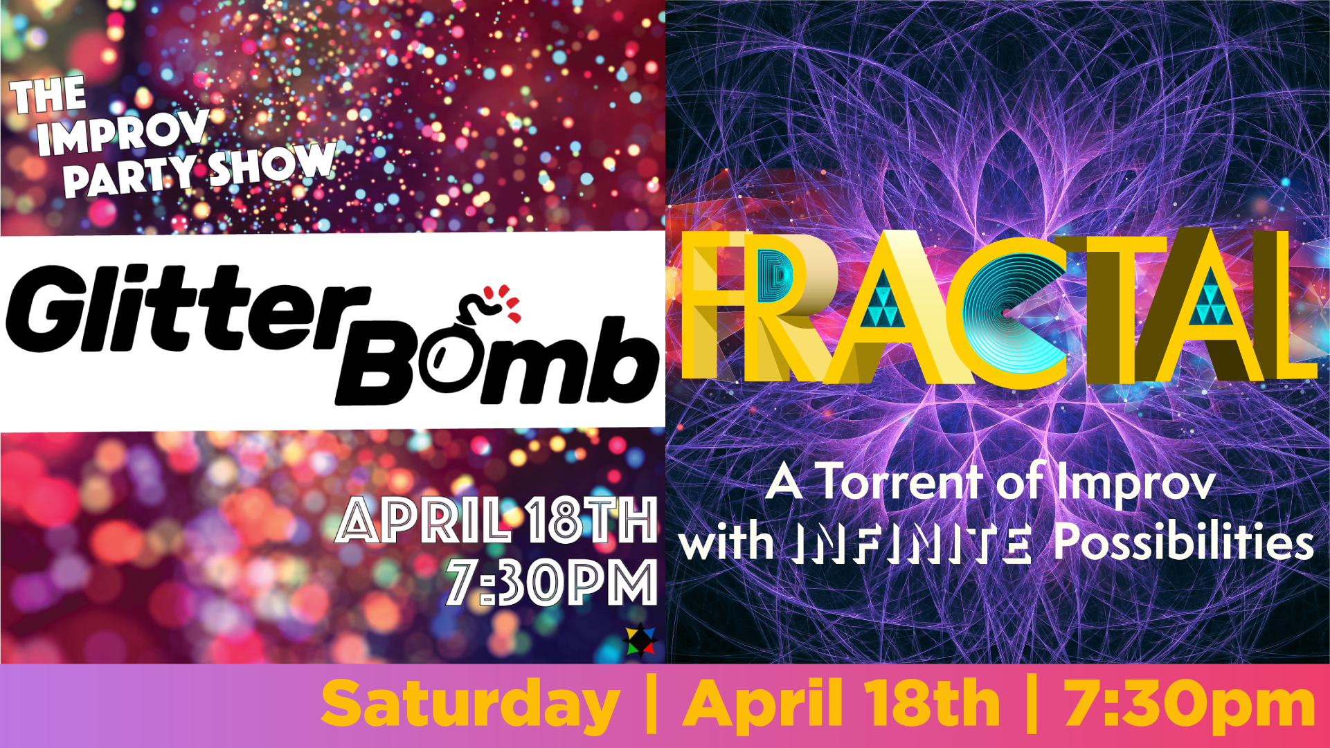 Games! Fun! You! Shortform fast paced improv games is what Glitterbomb is all about. And the best part is, you get to be part of the action! Summer season is the best season and we have the greatest party in town.